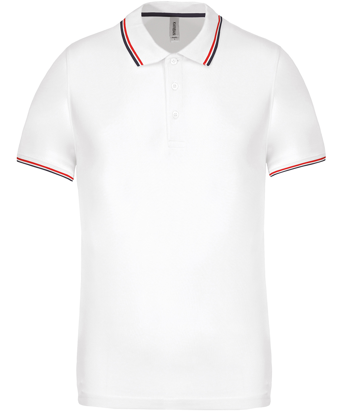 100% cotton piqué. 3 button placket. Contrast taped neck and side slits. Rib with contrast tipping at neck and cuffs. Twin needle finishing at the hem. Certified STANDARD 100 by OEKO-TEX®N° CQ1007/7, IFTH.